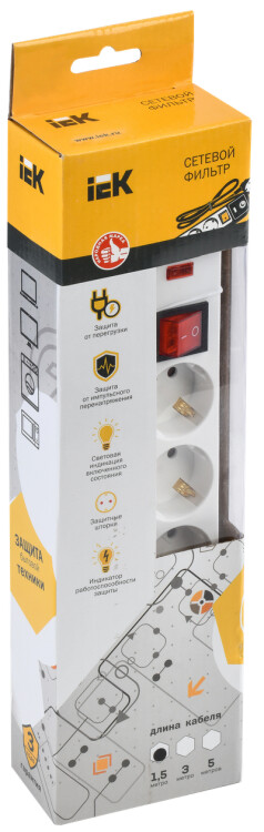 WFP10-16-05-01-N Сетевой фильтр СФ-05К 5 мест с заземлением 1,5м 3х1мм2 16А/250В IEK