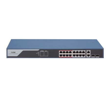L2, 16 гигабитных портов RJ45 PoE, 2 uplink порта 1000М RJ45, 2 гигабитных порта SFP, 802.3af/at/bt, порты 1-4 поддерживают HiPoE 90 Вт, общий бюджет PoE 227 Вт, порты 13-16 поддерживают режим передачи до 300 м (10 Мбит/с, CAT6), защита от перенапряжения 6KV, PoE watchdog, изоляция портов, металл, стоечный монтаж (19")