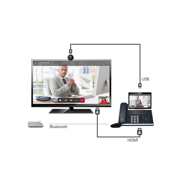 Персональный терминал ВКС, оснащен HD-видеокамерой, цветным сенсорным 8”-экраном с Multi-touch и полной клавиатурой. Эргономичный дизайн, регулировка угла наклона и положения камеры обеспечивают идеальный угол обзора во время видеоконференции. Интерфейсы HDMI, USB 2.0, Wi-Fi позволяют подключить дополнительное периферийное оборудование для различных сценариев использования. С помощью адаптера Yealink WPP20 можно без проводов передавать контент с ноутбука пользователя. Поддерживает 5-стороннюю смешанную конференцию (аудио + видео) собственными ресурсами и практически неограниченной емкости на внешних ресурсах с помощью серверного приложения Yealink Meeting Server.