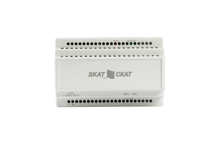 Резервированный источник питания с креплением на DIN рейку, U-вх. 150...250 В, U-вых. 12,5...14,0 В, I-макс. 4 А , под внеш. АКБ 12 В 17...26 Ач, свет. индик. "Сеть", "Выход", защита от КЗ и переполюсовки, IP20, -10...+40°С, 139x89x66 мм.