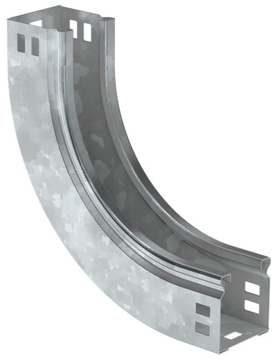 Поворот на 90° вертикальный внутренний плавный предназначен для организации вертикального внутреннего поворота кабельной трассы на 90°. Крышка аксессуара в комплект не входит. Аксессуар изготовлен из стали с цинковым покрытием, нанесенным погружением изделий в расплав цинка (защитный слой цинка не менее 55 мкм).