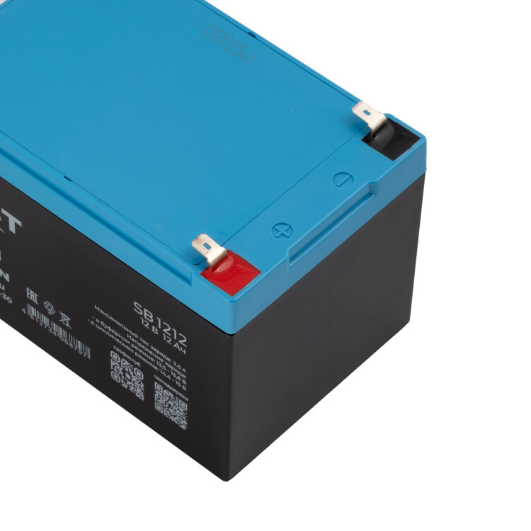 12В, 12Ач, максимальный ток заряда 3,6 А. Тип клеммы - F1 нож. Размер корпуса - 99х151х100. Вес - 3,2 кг. Срок службы - 6 лет. Гарантия - 18 месяцев.