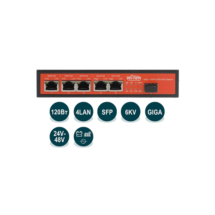Порты 4-5: автоопределение 48В Passive PoE 30Вт или 24В Passive PoE 24Вт