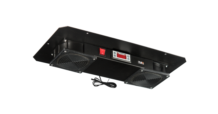 Вентиляторный блок TLK для настенных шкафов серии TWM, 2 вентилятора с фильтрующими элементами (нижние решётки пластиковые с фильтром), терморегулятором и датчиком, без шнура питания, черный