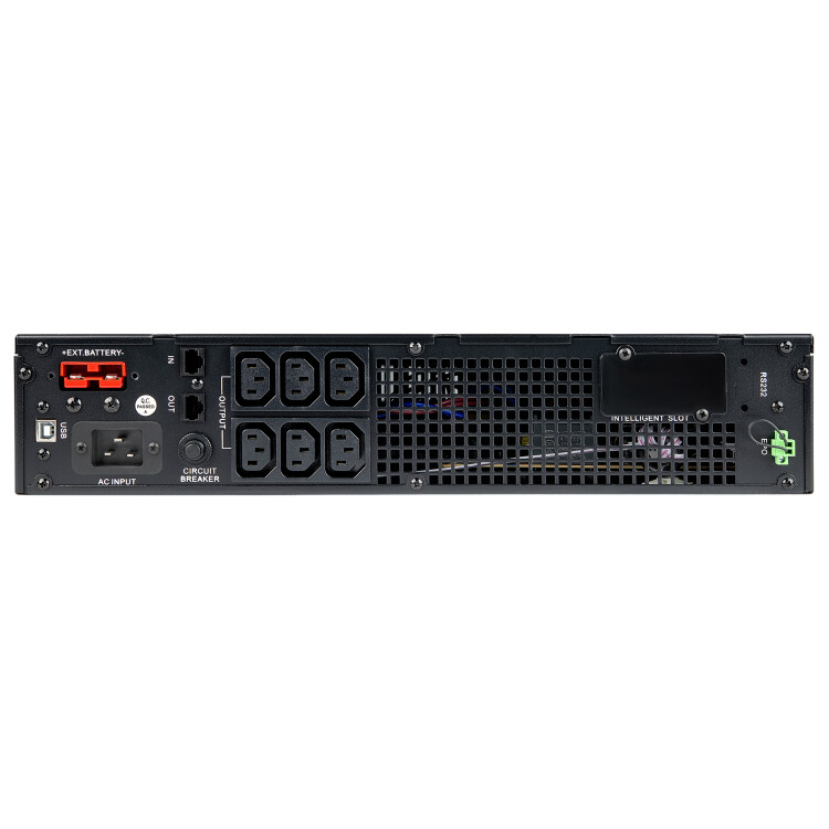 ИБП оснащён информативным LCD-дисплеем и множеством интерфейсов, включая USB и сетевые порты, что облегчает мониторинг и управление. Благодаря возможности подключения от 2 до 4 внешних батарейных блоков можно значительно увеличить время автономной работы, а наличие нескольких IEC-разъёмов позволяет подключать несколько устройств одновременно.