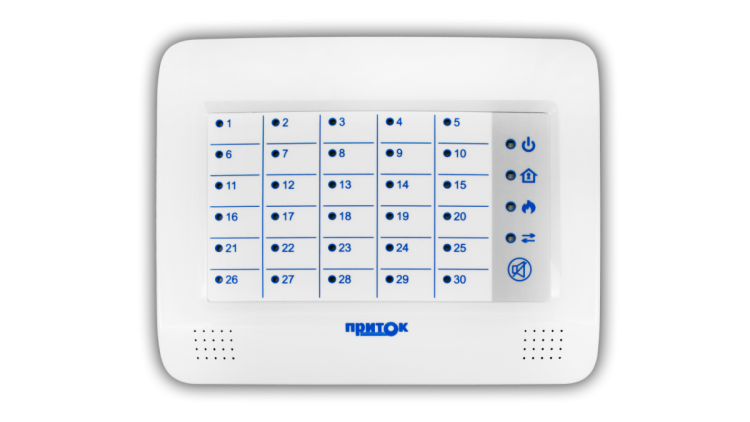 Модуль индикации с приборами Приток-А-КОП. Подключение по шине расширения. Считыватель брелоков Приток-NFC. Индикация 30 шлейфов. Питание 12 В.