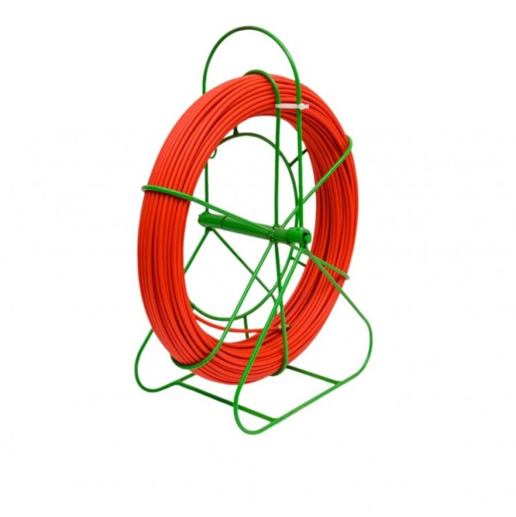 Кабельная протяжка Промрукав состоит из металлического корпуса и сматывающего узла в виде кассетного накопителя. В корпусе имеется приспособление для прохода и направления прутка при протяжке кабеля, а также с задачей препятствовать выпаду витков из накопителя. Применяется строителями и монтажниками для протяжки витой пары и других видов кабеля через трубы, металлорукава, короба, при прокладке линий компьютерной и телефонной связи, электропроводки, при установке домофонов, видео и аудиосистем, линий охранной сигнализации в офисных и жилых зданиях. Устройство состоит из стеклопластикового прутка с защитной оболочкой из износостойкого полиэтилена высокой плотности в металлической кассете с держателем. Диаметр прутка с оболочкой 6,0 мм. В свободном положении пруток приобретает прямолинейное положение за счет упругих сил и сравнительно легко протягивается вручную по трубам, металлорукавам, коробам и др. Минимальный радиус изгиба прутка 25-30 мм. Внимание! Гибкая насадка не входит в комплект поставки.
