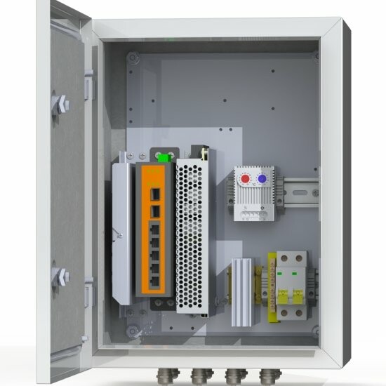 Промышленный управляемый коммутатор 4*PoE 802.3 af/at, 2*SFP - 1 шт. Оптический кросс 4 порта SC - 1 шт. Гермовводы 4*PG9, 4*PG13,5 -1 комплект. Цвет ral 7035 (серый)