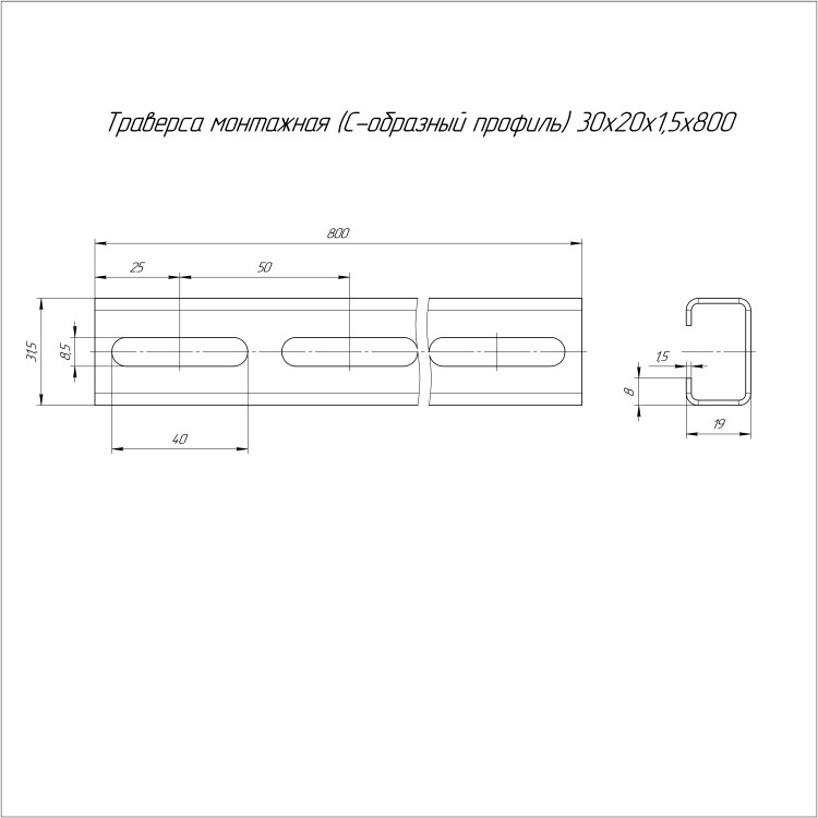 PR16.8570 Траверса монтажная (С-образный профиль) HDZ 30х20х800 (1,5 мм) Промрукав