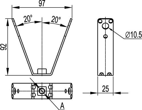 Крепление для профнастила имеет V-образную форму. Это изделие предназначено для подвешивания монтажных систем и элементов к волне профнастила. Для фиксации применяется шпилька М8.