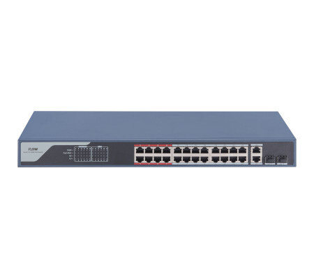L2, 24 гигабитных порта RJ45 PoE, 2 uplink порта 1000М RJ45, 2 гигабитных порта SFP, 802.3af/at/bt, порты 1-4 поддерживают HiPoE 90 Вт, общий бюджет PoE 370 Вт, порты 21-24 поддерживают режим передачи до 300 м (10 Мбит/с, CAT6), защита от перенапряжения 6KV, PoE watchdog, изоляция портов, металл, стоечный монтаж (19")