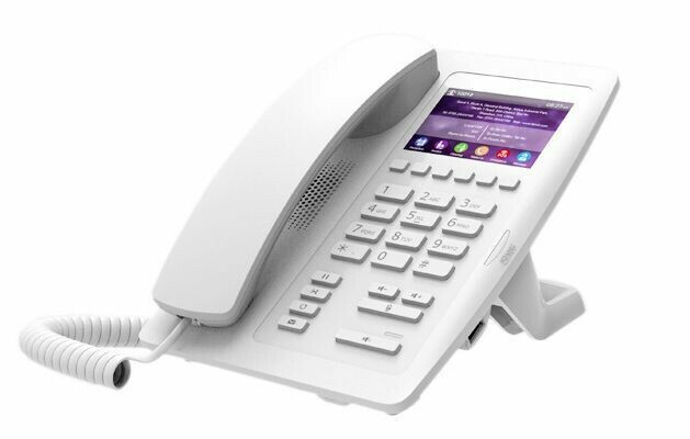 IP телефон Fanvil H5 - для гостиниц и отелей с простым понятным интерфейсом и поддержкой PoE. Оснащен 3,5" LCD-экраном и 6 программируемыми кнопками, действия которых выносятся на экран. Простой и приятный интерфейс, идеально подойдет для гостиниц высокого класса и международных отелей.