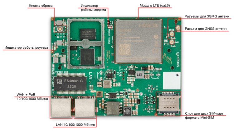 Rt-Brd m6-Gn гигабитный роутер с модемом LTE cat.6 для установки в гермобокс Kroks