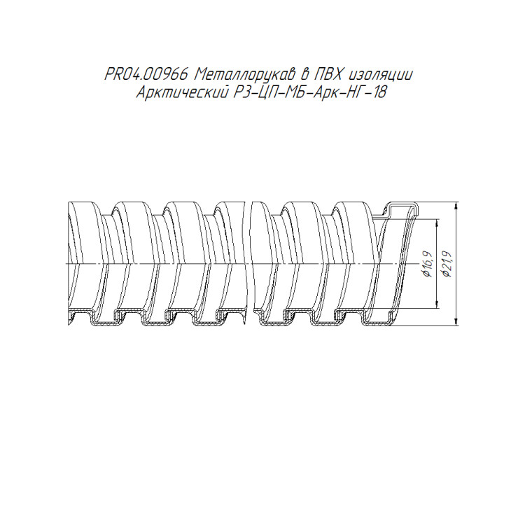 PR04.00966 Металлорукав в ПВХ изоляции Р3-ЦП-МБ-А-НГ-18 (50м/уп) Промрукав