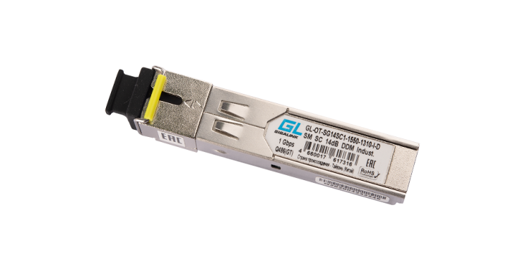 Модуль промышленный GIGALINK SFP, WDM, 1Гбит/c, одно волокно SM, SC, Tx:1550/Rx:1310 нм,DDM, 14 дБ (до 20 км) -40C. Оптический модуль GIGALINK GL-OT-SF14SC1-1310-1550 (старый артикул - GL-09T) выполнен в форм-факторе SFP и реализует дуплексную передачу данных по одному одномодовому волокну на расстояние до 20 км. Максимальная скорость передачи данных - 155 Мбит/с. Области применения: Fast Ethernet, STM-1. Тип разъема - SC. Конструкция модуля позволяет производить «горячую» замену.