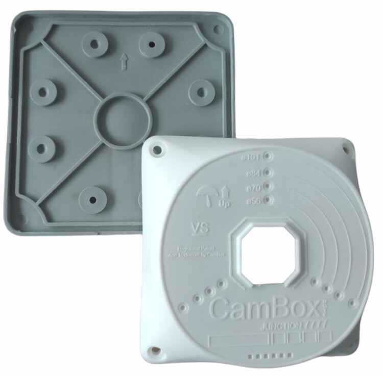 - Разметка на крышке для диаметров оснований видеокамер от 56 мм до 101 мм;