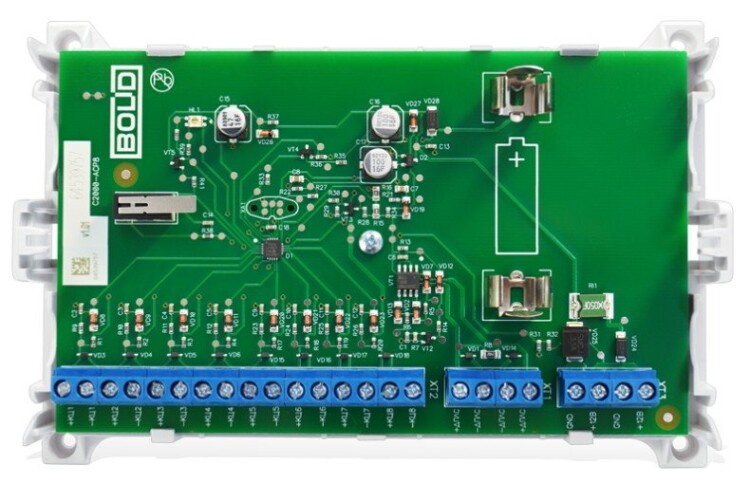 Адресный контроллер на восемь входов для счетчиков воды, электроэнергии, газа с импульсным выходом. Питается от двухпроводной линии, передает состояние счетчиков через «С2000-КДЛ» на АРМ "Ресурс"