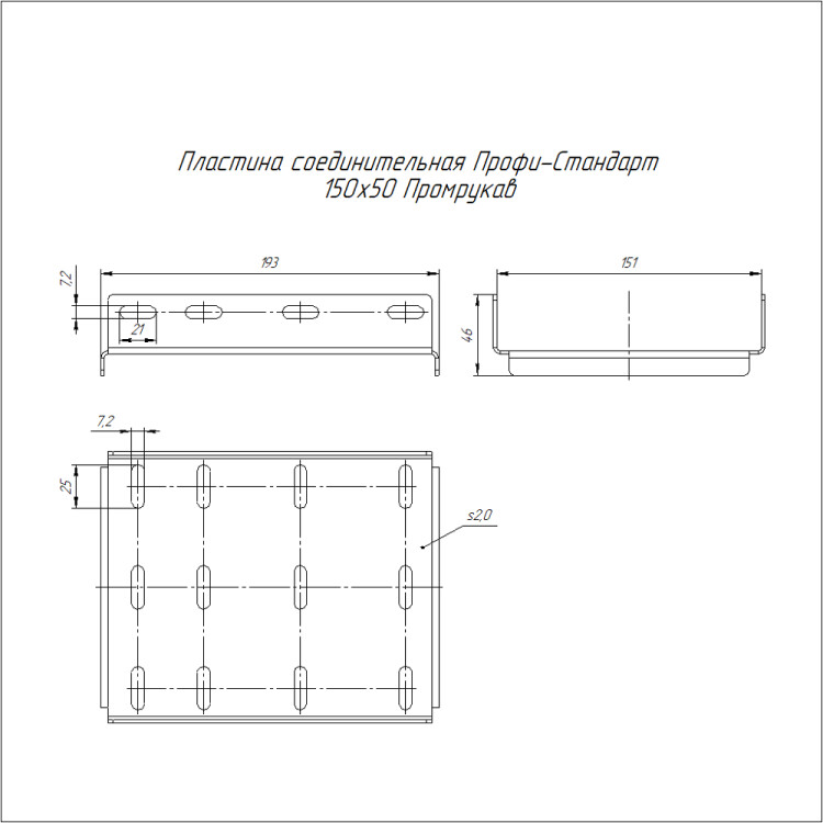 PR16.31938 Пластина соединительная Профи-Стандарт INOX (AISI 304) 150х50 (2,0 мм) Промрукав