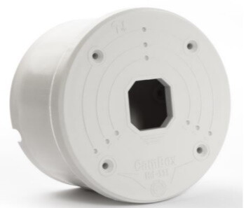 Монтажная коробка для камер видеонаблюдения (белый), 111mm x 111mm x 58mm, пластик ABS/Poliamid, -40 +80С, насечки под крепеж основания камеры.