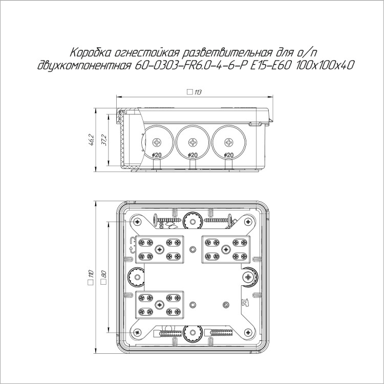 60-0303-FR6.0-4-6-Р Коробка огнестойкая разветвительная для о/п двухкомпонентная Е15-Е60 100х100х40 Промрукав